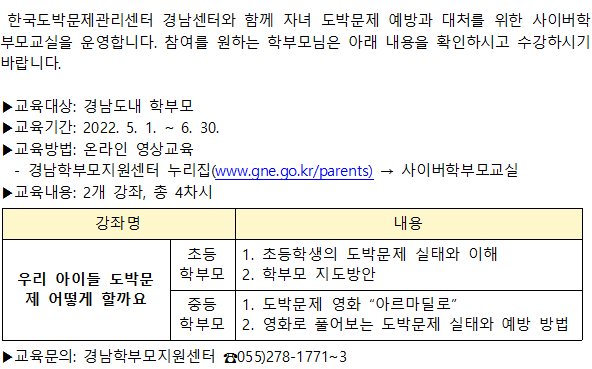 2022. 경남학부모지원센터 사이버학부모교실 교육 안내